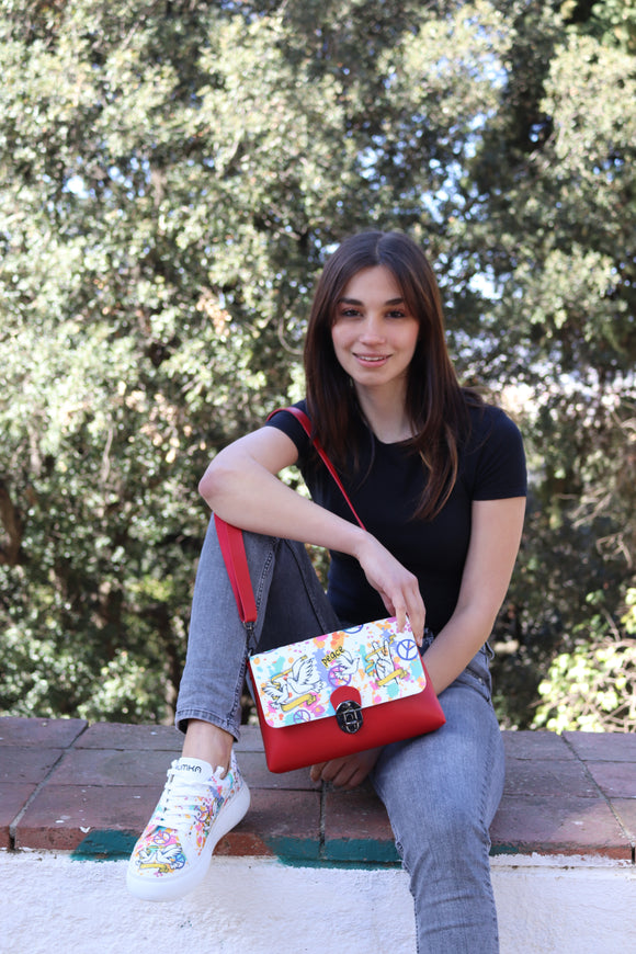 Bei Mumka haben wir verschiedene Arten von Taschen: vegane Umhängetaschen, vegane Rucksäcke, vegane Shopper-Taschen und vegane Geldbörsen. Alle unsere Damentaschen sind vegan und aus hochwertigem Kunstleder gefertigt. Das Innenmaterial ist aus nachhaltigen Materialien hergestellt. Alle unsere Taschen sind Unikate, entworfen in Barcelona, dem Herzen der Kunst, der Farben, des Designs und der Mode.