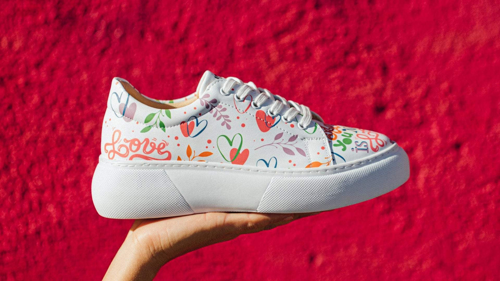 For example, we have platform sneakers with flowers, love, peace, and sayings . Depending on the print, some women's sneakers are more suitable for winter, while others are ideal for summer . On our social media, you'll find tips and outfit ideas for wearing your Mumka sneakers with printed sneakers .
