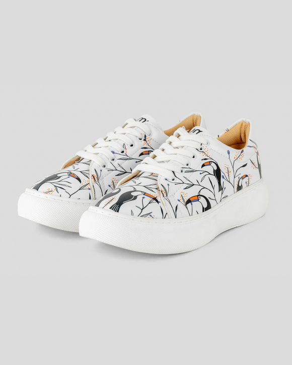 Our sneakers are vegan , handmade , and sustainable. We care deeply about the environment and about making comfortable, casual shoes that are ideal for any look and for staying on trend . We champion distinctive fashion, creating cheerful and fun designs that add a touch of style to any outfit. Our platform sneakers are original and make your everyday looks bold and unique, a little out of the ordinary. They're also comfortable footwear that flatters both your legs and any outfit you pair them with. For example, a navy suit looks great with patterned platform sneakers to give the look a casual touch.